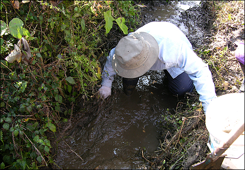 농사일 외에는 좀처럼 다른 일은 하지 않던 어머니. “돈이 없어 괴기는 못 사 믹일 망정 미꾸라지라도 잡아 체력 보강히서 군대 보내야겄다”며 미꾸라지 잡으러 나섰던 것이다. 어머니는 미꾸라지가 있겠다 싶은 곳을 평소 눈 여겨 봐두었던지 곧바로 상급배비 논 아래 강변으로 갔다.