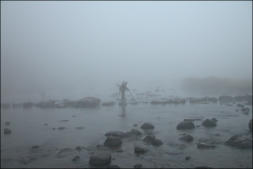 | ⓒ 김도수 | 두메산골 진뫼마을에 형형색색 꽃수를 놓던 붉은 낙엽들, 강물에 둥둥 떠내려가며 그 위에 하얗게 서리가 내리던 날. 남쪽 저리소산 아래 강부터 샅샅이 뒤지며 강 따라 내려갔으나 오리들은 보이지 않았다. 뛰엄바위에 이르렀을 즈음 오리 한두 마리 보이기 시작했다. 이십 여 마리나 되는 오리라 떼거리로 몰려다닐 거라 생각했으나 짐승들이 잡아먹어 버려 단 세 마리뿐이었다.