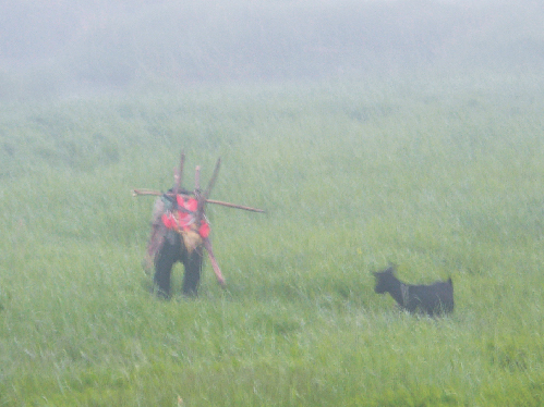 지게 짊어지고 염소 데리고 꼴 베러 가다가 강변에 염소 매 놓고 잠시 텃논에 들러 물꼬 막고 나서 다시 염소 데리고 웃골 소막으로 깔 비러 가는 재수네 아버지. 안개 속으로 총총 사라지는 뒷모습을 보고 있노라니 가슴이 아려 온다. |