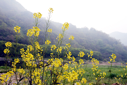 김장 때 뽑지 않고 그대로 놔둔 배추도 지난 겨울의 칼바람 이겨내고 연노랑 물결 이루며 봄나비떼 불러들이고 있다.