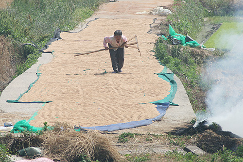 ▲ 강건너 양어장 들어선 곳이 작은 집 개간 논이다. 양어장 왼쪽에 평평한 밭이 있다 해서 '평밭' 취기가 달아오른 젊은 친구들. 큰집 문수형네집 골방으로 모여 한잔 더 하고 있었다. 그날 밤, 쓰린 속 움켜잡고 골방에 곯아 떨어졌는데 아침에 어머니가 깨우고 있었다. “아야 도수야! 어찌겄냐. 오늘 얌쇠양반네 보리 비로 가야 헌디 놉이 있어야 대신 보내제. 새복부터 놉 얻으로 댕기도 암(아무)도 없더라. 헐 수가 없다. 힘들지만 오늘 하루만 딱 가고 내일은 푹 쉬거라. 나도 술 묵어 봐서 안디 겁나게 힘들어. 힘든지 뻔히 암선(알면서)도 오늘은 어쩔 수가 없다. 너 허고 나 허고 찢어서 놉 갚으러 가야 빵꾸가 안나. 놉 갚으로 안가먼 다음에 우리 집 모내기 허로 암(아무)도 안와 불어. 내 얼릉 라면 하나 끓이올텅게 고 놈 묵고 새물 앞에 있는 얌쇠양반네 논으로 보리 비로 가거라 잉.” 아버지는 아침에 내가 나타나지 않자 “어저께 얼매나 처묵었가디 젊은 놈 새끼가 아직까지 코빼기도 안 보인다냐” 고함치고 있었다. 어머니는 라면 하나 얼른 끓여 아버지 몰래 집을 빠져 나와 큰집 골방으로 가지고 왔다. “어서 요놈 국물 좀 훌훌 마셔라. 힘들겄지만 오늘 하루만 애써라. 내일은 품 갚으러 갈 집 없응게 푹 쉬고 잉.” 축 처진 어깨 두드리며 맥풀린 내 손에 숟가락 쥐어주고 있었다. 머리가 빙빙 돌고 속이 울렁거려 걸어갈 힘도 없는데 보리를 베로 가야 한다니 난감하기만 했다. 등 토닥거려주며 애원하는 어머니. 검게 그을린 이마에 깊게 패인 주름살 보니 눈물이 핑 돌아 나는 새몰마을 신작로 길을 터벅터벅 걸어가고 있었다. 얌쇠양반네 논에 도착해 식구들과 함께 보리 베는데 논바닥도, 하늘도 모두 노랗게 변해 어디를 거머쥐고 보리를 베야 할지 몰라 머리가 빙빙 돌고 있었다. 그날은 아침부터 하루 종일 서산에 해지는 노을만 애타게 기다렸다. 무사히 보리를 베고 오자 어머니는 오진 모양이었다. “오늘 안 가 불었으먼 나 욕께나 얻어 묵었을턴디 니가 오늘 애써준 덕분에 내가 마을에 얼굴 들고 다닐 수 있게 되았다.” 검붉은 얼굴에 깊게 패인 주름살 오랜만에 활짝 펴지며 환하게 웃고 있었다. "줄이야!" 못 줄 떼는 소리 들려오던 평밭 골짜기. 지금 뻐꾸기 울어대며 떠나간 마을 사람들 찾아 부르고 있다. 이모작 모내기 끝나가던 밤꽃 피던 6월. 얼굴 닦아주던 어머니 수건 아카시아 나무에 걸쳐진 듯 평밭 골짜기 모두 희디희다. 지금 진뫼마을 앞 강물은 늙으신 부모님들이 윗마을에서 모내기 하느라 논바닥 나뒹굴며 일으킨 흙탕물 봇물 이루며 흐르고 있다. 땀방울 뒤범벅되어 흐르는 저 붉은 강. 모 먼저 심고 일어서며 ‘줄이야’ 큰소리치며 옆 사람 얼굴에 못줄을 튕기며 장난을 치던 모내기꾼들 강물에 어리어 평밭 산골짜기 돌아나가고 있다. |