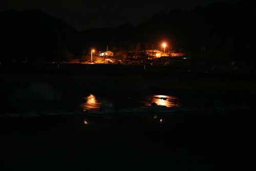 ▲ 진뫼마을에, 섬진강에 어둠이 내리고 있다. 캄캄한 강변 풍경. 귀신 이야기가 무수히 많았을 수밖에. |