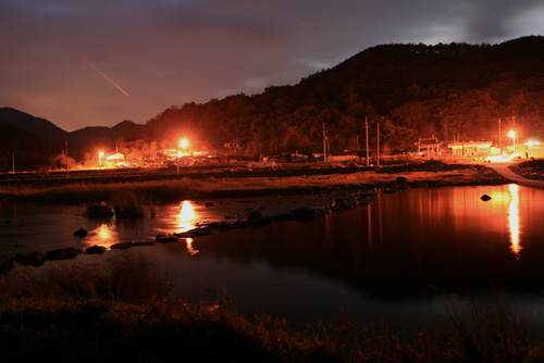 ▲ 진뫼 오리길은 나갈 때는 환한 낮이지만 돌아갈 때는 늘 밤길이기 십상이었다. 텅 빈 들녘 끝에 마을 가로등 불빛 보이면 얼마나 반가웠던지. |