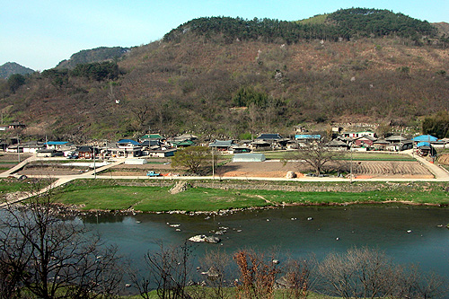 고향집 사서 돌아가던 날, 장모님 모시고 앞산에 핀 산벚꽃 강물에 어리는 진뫼마을 봄 풍경을 보여드렸다.