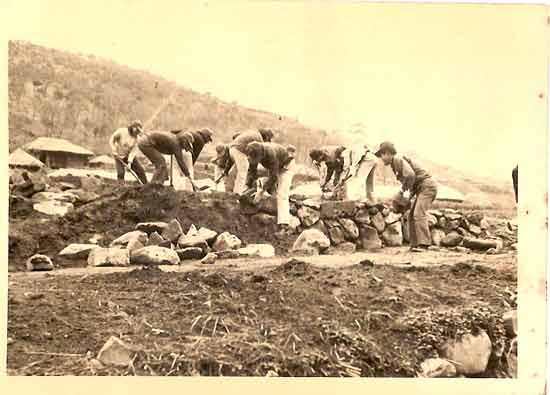 | ▲ 새마을운동이 한창일 당시, 길 넓히기 울력에 나선 진뫼마을 청년·처녀단. |
