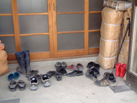 | ▲ 진뫼마을회관 현관에 놓인 신발짝 수를 세어본다. |