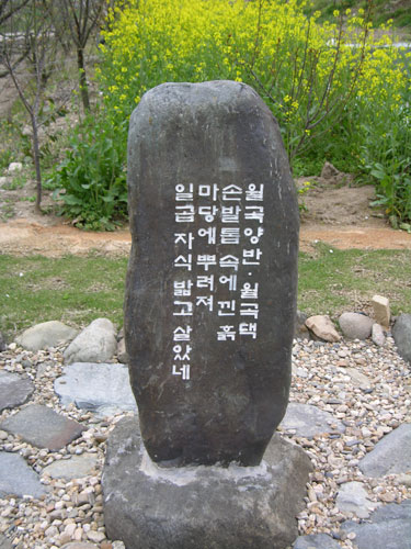 자식들은 비단길 걷게 하겠노라고 힘든 가시밭길 걸어오신 부모님의 깊은 뜻, 어찌 다 헤아릴 수 있겠습니까만, 여기 살아실 제 드리지 못한 사랑, 조그마한 비에 새겨 기리려 합니다.