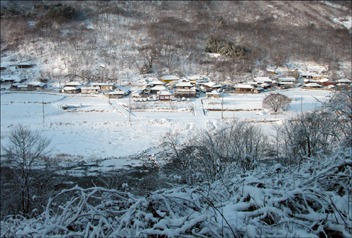 겨울철이 되면 진뫼마을은 산사의 겨울처럼 너무도 고요해 개 짖는 소리 한번 들려오지 않는 적적한 마을이 됩니다. 개라도 키우는 집이 있다면 가끔씩 개 짖는 소리라도 들려와 적적하지 않을 텐데 마을엔 짐승 키우는 집이라곤 아랫집 점순이네 집 암소 한 마리가 유일하니 진뫼마을은 깊은 산 속에 있는 절과 똑같이 고요한 겨울을 나고 있습니다. 잠이 오지 않아 마을 제일 윗집 한수 형님 집부터 마을 끝 영애네 집까지 오늘 밤 나와 함께 잠이든 마을 사람들 이름을 불러보며, 손가락 구부려 가며, 한 사람 한 사람씩 세어 봅니다. 빈 집, 또 빈 집을 건네 뛰다 이젠 구들장까지 사라져버린 옆집 앵순이네 집에 눈길이 머물고 맙니다.