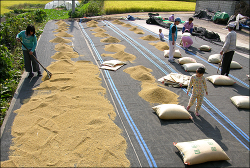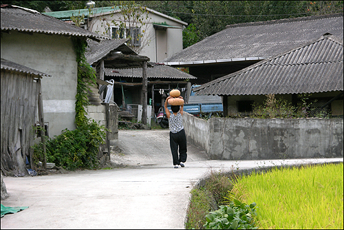 “점순이네 어메! 다무락(돌담)에다 쌀 올려놨어. 얼릉 갖다 놔.”