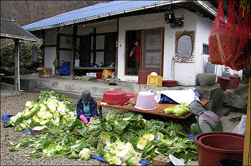 98년 진뫼마을 고향집을 산 뒤로부터 부모님이 짓던 텃밭에서 자란 배추와 고향 땅에서 솟아나는 물로 김장을 담아 가니 너무 좋다며 이웃집에 늘 자랑하고 다니던 누이. ‘올해가 마지막’이라는 남편 말에 묵묵부답 배추만 버물리고 있다. 나도 서운한데 누이 마음은 오죽했을까.