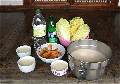 누나와 아내 형수님들과 함께 배추를 절이고 새벽에 일어나 씻는다. 이른 아침부터 배추를 양념에 버물리는데 허리가 아프다며 큰형수님께서 막걸리 한 사발씩 돌린다. 막 버물린 배추 한 가닥 쭉 찢어 꿀꺽꿀꺽 마시던 막걸리 한 통개가 어느새 반쯤 줄어들어 있다.