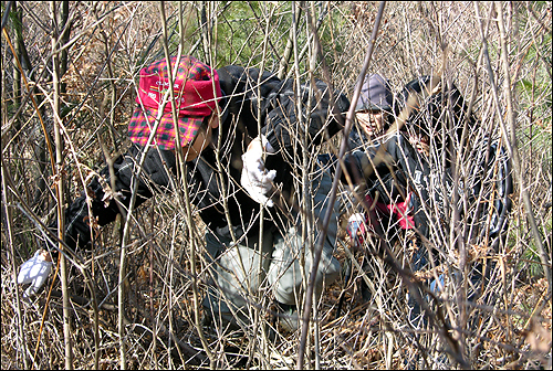 | ⓒ 김도수 | 내가 맨앞에서 잡목과 가시덩굴을 모두 제거하며 가는데도 가시덩굴이 하도 많아 아이들과 아내는 연신 가시에 찔리고, 잡목은 얼굴을 때린다. 가시덩굴에 손과 발이 긁히고 찔리고 옷을 뚫고 들어오는 가시를 빼내며 뒤따라 오던 아내와 이이들. 언제 길이 다시 나타나느냐고 계속 묻는다. 힘들게 숲을 헤치며 참고 또 참으며 뒤따라 오던 아내와 아이들이 고함을 지른다.