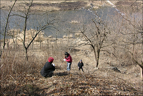 설 쇠러 왔던 사람들 대부분 떠나간 설 다음날 오전. 아이들과 아내를 앞세우고 앞산에 올라갔다. 아빠가 나뭇짐 짊어지고 내려오다 넘어졌던, 겨울방학 때 아침이면 마을을 바라보며 어머니께 고함을 치던 앞산에 가보고 싶었다.