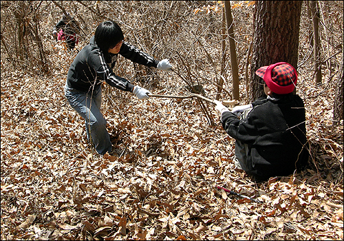 | ⓒ 김도수 | 아이들은 ‘임산’을 가로지르는 길을 따라 집에 가자고 한다. 나도 길이 사라져 너무 힘들 것 같아 포기하고 내려갈까 생각도 해봤다. 아내 눈치를 살펴보니 포기할 생각은 없는 것 같다. 그래, 이번에 올라가지 못하면 아이들은 영영 앞산에 발 딛고 서 있어 볼 날이 없을 거야.