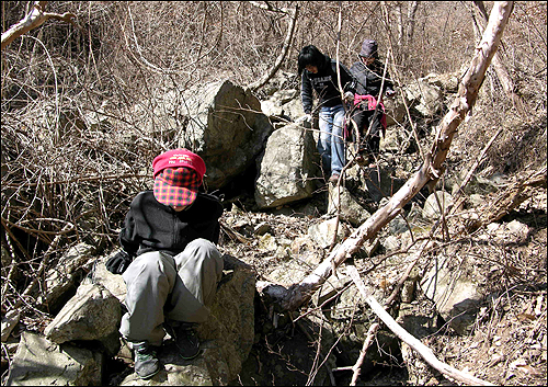 | ⓒ 김도수 | 가시덩굴 속을 오랫동안 헤매던 끝에 드디어 앞산 남쪽 산등성이에 다다르니 길이 나타난다. 아이들 얼굴에 갑자기 환한 미소가 돈다. 포기하지 않고 전진한 사람만이 누릴 수 있는 미소다.