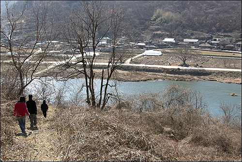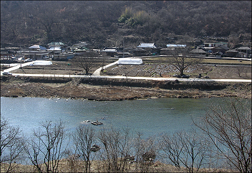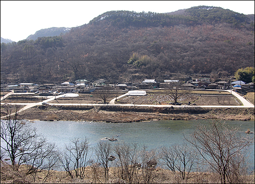 | ▲앞산에서 바라본 마을. 섬진강에 눈이 녹고 봄기운이 찾아들었다. |