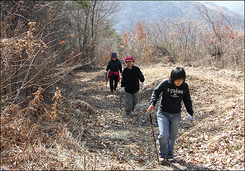경사가 아주 심한 비탈길이라 몇 미터 오르면 입에는 뜨거운 입김이 훅훅 품어져 나왔다. 우린 ‘어서 정상에 올라가 아침밥 짓는 어머니께 고함을 질러 자랑을 해야지’ 생각뿐이었다.