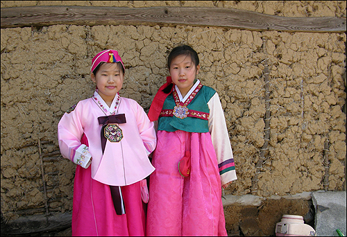 | ▲ 현석이 동생 딸내미들이 쇠죽쑤는 황토방 앞에서. |