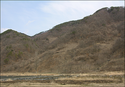 강 건너 고향 진뫼마을만 바라보며 사계절 내내 형형색색 옷을 갈아입으며 언제나 듬직하게 서 있는 앞산. 바라보면 바라볼수록 오르고 싶은, 아버지 굽은 등 같은 산. 나 평생 앞산을 바라보며 살리라. |