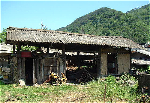 ▲ 탯줄 자른 고향집 아래채 오두막집. 중앙의 나무기둥 오른쪽은 당시엔 나뭇간이었다. 그 좁 은 방에서 부모님과 여섯 자식이 복닥거리고 살았다. |